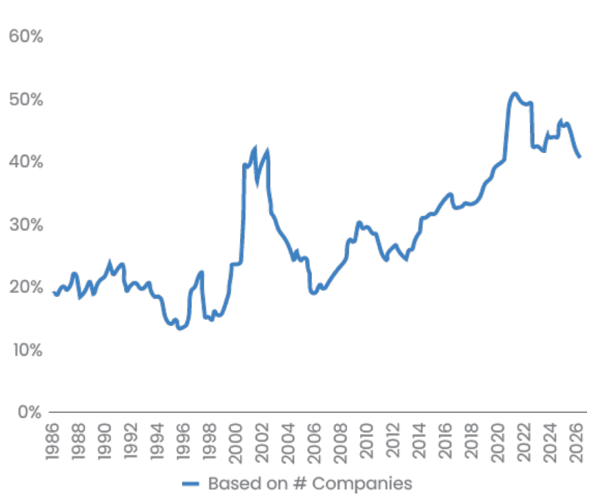 Exhibit 1: % Unprofitable (Russell 2000 Growth)